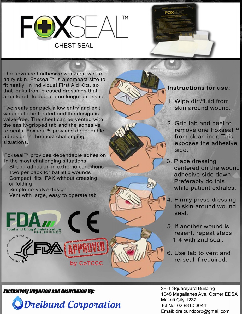 Foxseal Chest Seal is a pioneering occlusive dressing for the treatment of open chest wounds as a tool in prevention of pneumothorax.