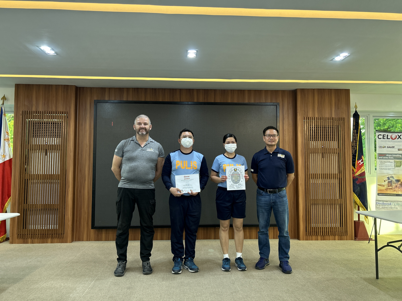 The event utilized bleeding control products, likely including items such as CELOX Hemostatic Granules, CELOX Gauze, and other essential medical supplies. Certificates of Participation were prepared to recognize the dedication of participants to the training program.